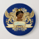 Príncipe africano real azul|Dorado bebé con Adorable príncipe africano usando una corona de oro encima de un escudo y pancarta de oro regal de león con un fondo azul real. Personaliza con el texto de tu elección en azul bebé. ©Miss Fiesta Sassy Diseño