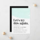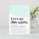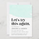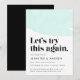 ¿Necesitas posponer o cambiar la fecha de tu boda? Informa a los invitados de la boda con nuestro anuncio de aplazamiento de boda moderno y trendy. Diseño elegante con un diseño de acuarela de menta en la parte superior con "Probemos esto de nuevo" en una fuente negra en negrita y elegante. Personaliza el anuncio agregando tus nombres, detalles de la boda y sitio web de la boda.