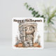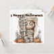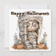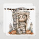 Problemas en la Tumba - Mummy Mischief y Mini Monsters Una mami de ojos anchos con la cara esquelética se sienta dentro de una tumba de piedra, una mano apuntando hacia afuera en juguetón desafío. Rodeada de dos farolillos tallados y pequeños esqueletos, la escena está enmarcada por lápidas y hojas de otoño dispersas. El diseño combina el encanto espeluznante con las travesuras caricaturistas, capturando el espíritu de Halloween a través de personajes atrevidos, detalles inquietantes y un guiño a lo inesperado.