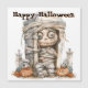 Problemas en la Tumba - Mummy Mischief y Mini Monsters Una mami de ojos anchos con la cara esquelética se sienta dentro de una tumba de piedra, una mano apuntando hacia afuera en juguetón desafío. Rodeada de dos farolillos tallados y pequeños esqueletos, la escena está enmarcada por lápidas y hojas de otoño dispersas. El diseño combina el encanto espeluznante con las travesuras caricaturistas, capturando el espíritu de Halloween a través de personajes atrevidos, detalles inquietantes y un guiño a lo inesperado.