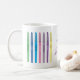 Una taza inspiradora para profesores con plumas de color arcoiris. Personalízalo con el nombre del profesor . También puede cambiar las palabras positivas si desea . © ArianeC Ilustraciones-Todos los derechos reservados