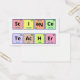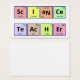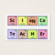 Tarjeta de visita. Las palabras "Profesor de Ciencias" se explican utilizando símbolos de la tabla periódica de elementos. El elemento Neon (Ne) fue invertido para obtener las letras necesarias para la palabra "ciencia".