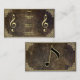 La tarjeta de visita del profesor de música diseña con un fondo sucio del marrón oscuro, marco floral del oro, símbolos de música de la American National Standard.