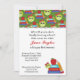 Una linda invitación perfecta para cualquier profesor que se retire. Cuenta con una tapa verde con libros escolares y lápices personalizados. Un gráfico de una cinta blanca recorre la parte superior. personalizar todo el texto.
