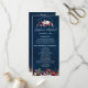 La elegante y moderna carta de programa de boda floral con acuarela floral, romántica y romántica, incluye un ramo de burdeos / marsala, rosas color rosa, morado, color melocotón con follaje a juego sobre fondo azul marino. Perfecto para un boda de otoño/verano medio. Encontrará más diseños y variaciones de mi tienda "blissweddingpaperie". Y no dudes en ponerte en contacto conmigo para seguir personalizando o coincidiendo con elementos