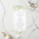 Nuestro programa de bodas de moda de jardín incluye detalles de su ceremonia en elegantes letras grises, enmarcadas en la parte superior y inferior por follaje verde pastel y hojas. Revertir muestra los miembros de la fiesta de bodas con campos de texto fácilmente modificables. Coordina con nuestra colección de invitaciones a bodas botánicas Airy para bodas de verano, primavera, exterior o jardín. Utilice los campos de plantilla para agregar la información de la ceremonia y de la fiesta nupcial y, a continuación, haga clic en "Personalizar" para cambiar la posición de los elementos si fuera necesario. ¿Necesitas ayuda? Contáctame a través del enlace "Preguntar a este diseñador" en esta página.