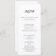 Elegante Ampersand Monogram Iniciales Modern Black and White Wedding Program. Un diseño magnífico con las iniciales de la pareja y una decoración con acento cardíaco. Texto negro y carbón sobre marfil blanco clásico. Personalizar con los detalles del menú boda. Todos los tipos de letra, texto y colores son personalizables. Le invitamos a visitar nuestra tienda, Austen & Grace, para ver la suite boda completa, productos a juego y más. Póngase en contacto con nosotros si necesita ayuda.