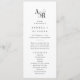 Este elegante y elegante programa de bodas exclusivo de la Andrea Collection es perfecto para un boda moderno. El diseño clásico y elegante presenta un lujoso monograma audaz en blanco y negro con un toque industrial único. Incluya los nombres de la pareja, la fecha y ubicación del boda, mensaje de agradecimiento, orden de servicio, fiesta de boda y un monumento opcional "en memoria amorosa".