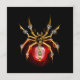 Araña mecánica, de vapor punk con oro, engranajes de latón y una lámpara de vidrio roja sobre un fondo negro. Estilo Steampunk.