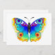 Arcoiris, realista, de dibujo artístico, colores brillantes mariposa pavo real con alas detalladas texturizadas sobre fondo blanco. Mariposa arcoiris.