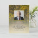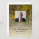 Recuerde a su ser querido y celebre su vida con el Programa de Servicio Funeral de Autumn Leaves Lane. Este personalizado de la época de tributo a la muerte en un homenaje carpintero de madera muestra una fotografía natural pintada digitalmente de una pintoresca calle bordeada de árboles altos con hojas cambiantes. Personalizar con una foto del fallecido, detalles personales y orden de ceremonia de su celebración del servicio de la iglesia. Perfecto para un evento estacional de septiembre, octubre o noviembre otoño.