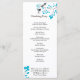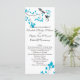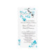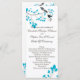 Este programa de bodas incluye dos pájaros con acentos azules y una rama arbórea con hojas azules a juego.