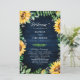 El elegante y moderno programa rústico de bodas de campo presenta flores de girasol amarillas brillantes y aliento de bebé / marco floral gypsophila con hojas sobre fondo de madera de granero azul marino. Encontrará más diseños y variaciones de mi tienda "blissweddingpaperie". Y no dudes en ponerte en contacto conmigo para seguir personalizando o coincidiendo con elementos