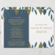 Estos programas de doble pliegue son perfectos para cualquier pareja que planee una moderna celebración boda. El diseño presenta hojas de follaje estilizadas a mano en tonos azules y verdes sobre un fondo blanco limpio y está terminado con una redacción sencilla de editar. El diseño sencillo puede ser personalizado para su evento especial y será el orden perfecto para cualquier fiesta floral, incluyendo duchas de novias, compromisos, duchas de bodas, fiestas de cumpleaños y mucho, mucho más.