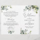 Diseñado para coordinar con nuestra colección de bodas de Boho Greenery, este programa de ceremonias de personalizable de Bi-Fold incluye ramas de eucalipto de color agua con un elegante tipo de letra serif y elegantes gráficos de texto de caligrafía. Elementos coincidentes disponibles.