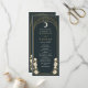 Eleva tu evento con nuestro programa inspirado en el Art Nouveau! Con un arco dorado radiante, estrellas brillantes y delicadas flores blancas enmarcadas en un fondo azul profundo, este diseño añade elegancia eterna a tu mesa. ¡Ideal para bodas, galas y reuniones de alto nivel! Tenga en cuenta que el oro de este producto NO es un Relieve metalizado real; se imprime sin formato.
