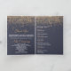 Programas de boda glamurosos, elegantes y sofisticados con brillo dorado falso impreso sobre fondo azul marino. Este diseño clásico y sofisticado es perfecto para la pareja que se casa trendy y con estilo. Personalice con su propio mensaje en la parte frontal así como una inicial de monograma personalizada en la parte posterior. Todo el diseño de impresión de foto.