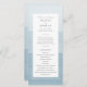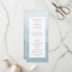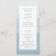 Moderno Programa de Bodas Azules. Este hermoso y elegante programa de bodas azul polvoriento presenta un fondo oscuro de color agua con un borde blanco. La parte posterior de la invitación incluye el mismo fondo de color azul acuático. Buscar elementos coincidentes en la colección de Bodas de color azul turbio.