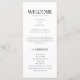 Un programa de boda minimalista y moderno en blanco y negro. Personalizar con sus nombres, orden de la ceremonia, gracias a su mensaje y más. Siéntase libre de editar más, como cambiar los colores de fondo, los colores del texto, etc., haciendo clic en "personalizar este diseño", luego "editar usando la herramienta de diseño". Por favor, envíe un mensaje al diseñador si desea que se haga esto por usted.