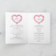 Mistletoe arte botánico dibujado a mano en un programa de boda en forma de corazón con una foto en la parte posterior en rojo berry, muy gris oscuro y blanco de invierno. Personalice este programa de 4 páginas plegado boda con sus propios detalles de la ceremonia de boda. Sencilla línea botánica de arte mistletoe hojas y diseño de bayas en rojo, gris de carbón oscuro y blanco. Hay otros colores y elementos bodas coincidentes disponibles. © Dibujo y diseño original de Sarah Trett exclusivamente para www.mylittleedenweddings.com en Zazzle.