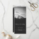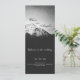 Boda blanco y negro bajo las montañas. Fotografía paisajística de una montaña cubierta de nieve con oscuridad abajo y cielo blanco nublado arriba. Los nombres de la pareja están en letra negra encima de la montaña en el cielo y todos los detalles están en letra blanca debajo de la montaña. Personalizable completo y productos bodas personalizables.