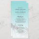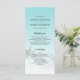 Elegante programa de bodas destino con un diseño tropical de palmeras en un brillante fondo azul con escritura elegante y tipografía moderna. El azul de la concha del mar desaparece sobre un fondo blanco. Simplemente añada tus detalles bodas a este elegante programa de bodas de playa tropical. Diseñado exclusivamente para usted por Happy Dolphin studio.