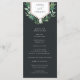 Elegante programa de boda botánico que presenta los detalles de su ceremonia coronados por un elemento geométrico de falso foil de cobre adornado con follaje de acuarela verde y pequeñas flores blancas, con sus nombres en el interior. La parte posterior enumera a los miembros de su fiesta de boda con campos de texto fácilmente editables en blanco sobre un fondo oscuro intenso y azulado. Coordina con nuestra colección de invitaciones de boda Greenhouse. Utilice los campos de plantilla para agregar la información de la ceremonia y el séquito nupcial, y luego haga clic en "Personalizar" para reposicionar los elementos si es necesario.