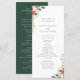Elegante acuarela Invernal Botánico Arreglos Florales, programa de bodas. Tipografía en blanco y negro con colores de fondo en blanco y verde.