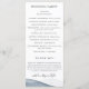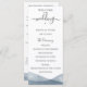 Bordes elegantes y modernos de acuarela azul con tinte, programa de boda. El programa cuenta con un acento de caligrafía linda que dice "boda" con varias líneas para listas de texto personalizadas para el orden de los eventos de la ceremonia, la fiesta de boda y una nota de agradecimiento.