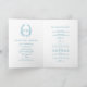 Programa de bodas de arte botánico de hoja oval de color azul verde verde azulado plateado blanco dibujado a mano. Diseño de hoja simple en torno a sus propias iniciales de monograma en plata, agua verde azulada y blanco. Hay disponibles otros colores y elementos bodas coincidentes. © Dibujo y diseño original de la hoja de Sarah Trett para www.mylittleedenweddings.com en zazzle.