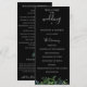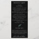 Programa de boda de acuarela botánica moderna verde, negro. El programa incluye varias líneas para listas de texto personalizadas para el orden de los eventos de la ceremonia, la fiesta de bodas y la nota de agradecimiento.