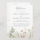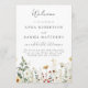 Este diseño está decorado con un borde acuático de flores silvestres en tonos dorados, rojos, azules y verdes. Perfecto para bodas de primavera y verano.