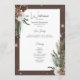 El diseño de este programa de bodas incluye un ramo rústico de pino verde y piña sobre un suave fondo marrón de cacao con flores blancas. Se acentúa con un resguardo blanco brillante para ilustrar la magia de las hermosas vacaciones de invierno. Ideal para Navidades o bodas de invierno. Creado por Simply Farmhouse Press.