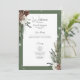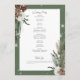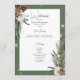 El diseño de este programa de bodas incluye un ramo rústico de pino verde y piña sobre un fondo verde de pino con flores blancas. Se acentúa con un resguardo blanco brillante para ilustrar la magia de las hermosas vacaciones de invierno. Ideal para Navidades o bodas de invierno. Creado por Simply Farmhouse Press.