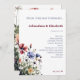 Guíe a sus huéspedes durante su día especial con este programa de bodas de flores silvestres de acuarela de excelente elaboración. Decorado con suaves flores bohemias florales, delicadas flores de boho y elegantes acentos botánicos, este diseño le aporta un ambiente fresco y romántico a su ceremonia. La elegante disposición combina la tipografía moderna con un toque femenino y artístico, creando una perfecta combinación de sofisticación y encanto. Con los detalles de su ceremonia de boda en un formato claro y elegante, este programa es un conservador perfecto que complementa su tema bohemio de primavera con elegancia natural y detalles de corazón.