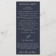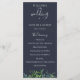 Programa de boda de foliaje de bosque de acuarela rústica, azul marino. El programa cuenta con varias líneas para listas de texto personalizadas para el orden de los eventos de la ceremonia, la fiesta de bodas y la nota de agradecimiento.