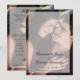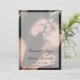 Programa de boda moderno que incluye sus nombres y detalles de la boda con una superposición transparente sobre su foto favorita. La parte posterior tiene una segunda imagen junto con su orden de ceremonia, fiesta de boda y mensaje de agradecimiento. Un diseño elegante y sofisticado para una pareja contemporánea.