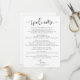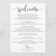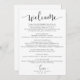 Bienvenido a su invitado con esta encantadora carta - ideal para los regalos del hotel para los huéspedes de fuera de la ciudad! ¡Edite fácilmente la agenda diaria, los nombres y la fecha! Este diseño presenta una bonita fuente clásica negra, perfecta para cualquier boda.