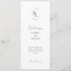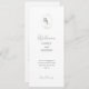 Elegante y elegante. Este encantador y único programa de bodas cuenta con dos iniciales montadas con un suave marco verde floral, un mensaje de bienvenida en la parte delantera y un programa completo en la parte posterior. Un conjunto contemporáneo de tipos de letra en una moda verde oscuro del bosque marca un tono moderno y elegante. La plantilla incluye un fondo blanco tanto en la parte posterior como en la parte frontal. Las variaciones de esta plantilla elegante están disponibles en la misma colección.