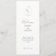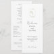 Elegante y elegante. Este encantador y único programa de bodas cuenta con dos iniciales monogramadas con una suave letra y marco verde floral, un mensaje de bienvenida al frente y un programa completo al fondo. Un conjunto contemporáneo de tipos de letra en una moda verde oscuro del bosque marca un tono moderno y elegante. La plantilla incluye un fondo blanco tanto en la parte posterior como en la parte frontal. Las variaciones de esta plantilla elegante están disponibles en la misma colección.