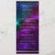 El programa de Bodas Astronómicas Cosmic Purple Verde azulado Silver Sun Moon presenta un sol, luna y estrellas con un marco plateado sobre un colorido fondo cósmico morado, verde azulado y azul con tu orden de ceremonia en la parte delantera y la fiesta de bodas y gracias al reverso en la tipografía moderna de escritura blanca. Personalice editando el texto en los cuadros de texto proporcionados. Diseñado por Evco Studio www.zazzle.com/store/evcostudio