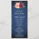 Estos elegantes programas de ceremonias nupciales cuentan con rosas color agua, rosa y borgoña floral, follaje y luces de cuerda sobre un fondo azul marino. La parte delantera de la tarjeta tiene la ceremonia y la parte trasera de la tarjeta muestra la fiesta de la novia. Estos programas de boda forman parte de una colección que incluye una amplia gama de artículos de papelería boda que puede personalizar para su boda. Visite nuestra tienda o vea nuestras páginas de colección para ver el rango completo.