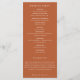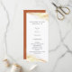 Marco de lavado de acuarela del desierto bohemio, programa de boda. Listas de texto de plantilla para el orden de los eventos de la ceremonia, fiesta de boda y nota de agradecimiento. El color de fondo se muestra en naranja rojizo oscuro coordinado, se puede personalizar.
