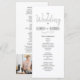 Sencillo, minimalista, negro y blanco, programa de boda de letra moderna, con foto de la pareja en la parte posterior.