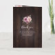 Decoración floral botánica acuática en color violeta, morera, rosa polvoriento y melocotón sobre fondo de grano de grano de grano de grano de grano de grano oscuro, moderno y elegante, magníficas tarjetas de programa de bodas para la boda rústica botánica en otoño e invierno. Vea todas las piezas coincidentes de la colección.