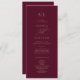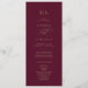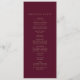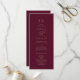 Este romántico programa de boda en monograma de caligrafía burdeos es perfecto para un simple boda. El moderno diseño clásico presenta vistosos remolinos y florituras con magnífica y elegante tipografía de oro con imitación de champagne a mano. Incluya las iniciales de las parejas, los nombres de la pareja, la fecha y ubicación del boda, mensaje de agradecimiento, orden de servicio, fiesta de boda y un monumento opcional "en memoria amorosa". Nota: Este diseño no tiene Relieve metalizado oro real. Es un gráfico de alta calidad hecho para parecer un Relieve metalizado dorado.