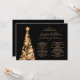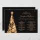 Boda elegante y festivo del menú del de oro del árbol de Navidad, con programa fiesta y texto del menú, purpurina luces árbol de Navidad y escritura moderna de tipografía.