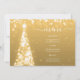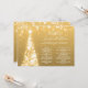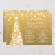 Boda elegante y festivo del menú del de oro del árbol de Navidad, con programa fiesta y texto del menú, purpurina luces árbol de Navidad y escritura moderna de tipografía.