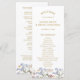 Disfrute de la belleza de la naturaleza en su día especial con nuestro exquisito programa de bodas de acuarela de flores silvestres. Elegante, único y floreciente con amor. Utilice los campos de texto para personalizar su diseño con su propio texto y detalles. Si desea cambiar el estilo de letra, color o ubicación del texto, simplemente haga clic en el botón "Personalizar más adelante".