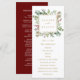 Este programa de boda presenta eucalipto pintado a la acuarela, hojas verdes, bayas rojas, ramas de pino y un marco cuadrado dorado falso con un fondo rojo en la parte posterior. Para una personalización más avanzada de este diseño, haga clic en el enlace "Personalizar más". También están disponibles artículos coincidentes.